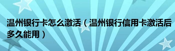 大家好,小元来为大家解答问题。温州银行卡怎么激活,温州银行信用卡激活后多久能用这个很多人还不知道,现在让我们一起来了解下吧!