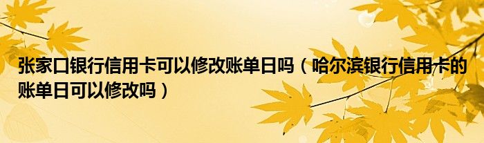 导读 大家好,小元来为大家解答问题。张家口银行信用卡可以修改账单日吗,哈尔滨银行信用卡的账单日可以修改吗这个很多人还不知道,现在让我们一