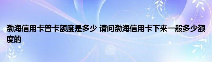 导读 大家好,小元来为大家解答问题。渤海信用卡普卡额度是多少,请问渤海信用卡下来一般多少额度的这个很多人还不知道,现在让我们一起来了解下