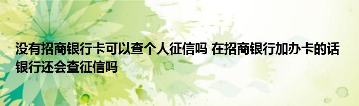 导读 大家好,小元来为大家解答问题。没有招商银行卡可以查个人征信吗,在招商银行加办卡的话,银行还会查征信吗这个很多人还不知道,现在让我们