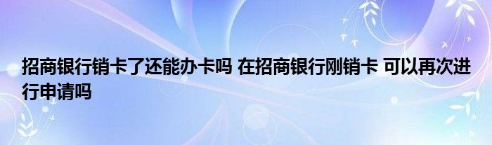 导读 大家好,小元来为大家解答问题。招商银行销卡了还能办卡吗,在招商银行刚销卡,可以再次进行申请吗这个很多人还不知道,现在让我们一起来了