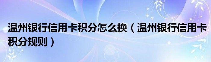 导读 大家好,小元来为大家解答问题。温州银行信用卡积分怎么换,温州银行信用卡积分规则这个很多人还不知道,现在让我们一起来了解下吧!温州银