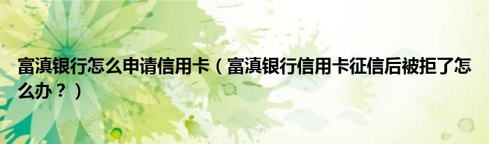 导读 大家好,小元来为大家解答问题。富滇银行怎么申请信用卡,富滇银行信用卡征信后被拒了怎么办?这个很多人还不知道,现在让我们一起来了解下