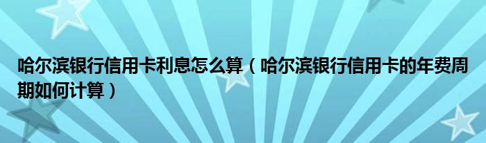 导读 大家好,小元来为大家解答问题。哈尔滨银行信用卡利息怎么算,哈尔滨银行信用卡的年费周期如何计算这个很多人还不知道,现在让我们一起来了