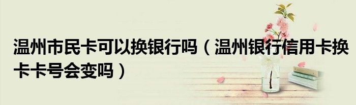 导读 大家好,小元来为大家解答问题。温州市民卡可以换银行吗,温州银行信用卡换卡卡号会变吗这个很多人还不知道,现在让我们一起来了解下吧!按