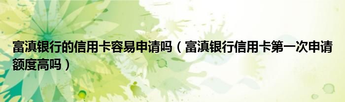 大家好,小元来为大家解答问题。富滇银行的信用卡容易申请吗,富滇银行信用卡第一次申请额度高吗这个很多人还不知道,现在让我们一起来了解下吧!