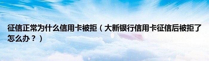 导读 大家好,小元来为大家解答问题。征信正常为什么信用卡被拒,大新银行信用卡征信后被拒了怎么办?这个很多人还不知道,现在让我们一起来了解