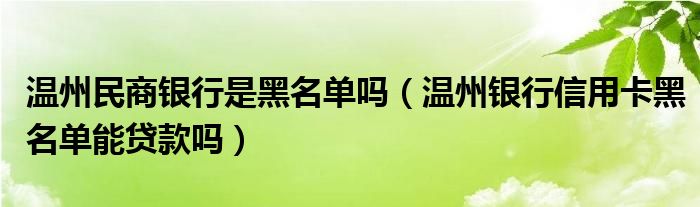 导读 大家好,小元来为大家解答问题。温州民商银行是黑名单吗,温州银行信用卡黑名单能贷款吗这个很多人还不知道,现在让我们一起来了解下吧!按