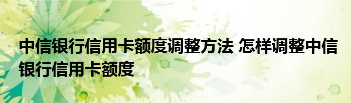 导读 大家好,小元来为大家解答问题。中信银行信用卡额度调整方法,怎样调整中信银行信用卡额度这个很多人还不知道,现在让我们一起来了解下吧!