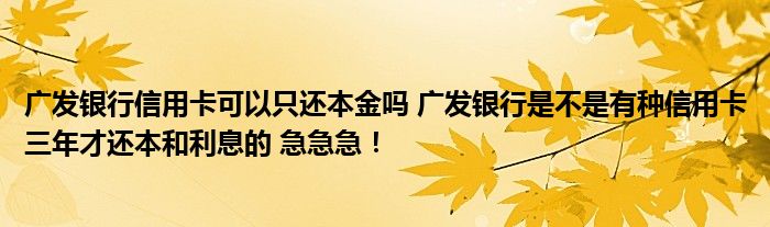 导读 大家好,小元来为大家解答问题。广发银行信用卡可以只还本金吗,广发银行是不是有种信用卡三年才还本和利息的,急急急!这个很多人还不知道