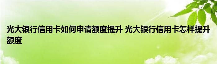 导读 大家好,小元来为大家解答问题。光大银行信用卡如何申请额度提升,光大银行信用卡怎样提升额度这个很多人还不知道,现在让我们一起来了解下