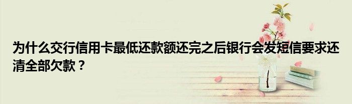 导读 大家好,小元来为大家解答问题。为什么交行信用卡最低还款额还完之后银行会发短信要求还清全部欠款?这个很多人还不知道,现在让我们一起来