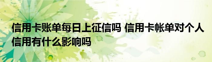 导读 大家好,小元来为大家解答问题。信用卡账单每日上征信吗,信用卡帐单对个人信用有什么影响吗这个很多人还不知道,现在让我们一起来了解下吧
