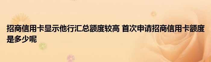 导读 大家好,小元来为大家解答问题。招商信用卡显示他行汇总额度较高,首次申请招商信用卡额度是多少呢这个很多人还不知道,现在让我们一起来了