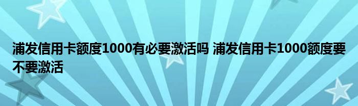 导读 大家好,小元来为大家解答问题。浦发信用卡额度1000有必要激活吗,浦发信用卡1000额度要不要激活这个很多人还不知道,现在让我们一起来了解