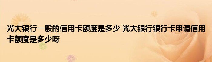 导读 大家好,小元来为大家解答问题。光大银行一般的信用卡额度是多少,光大银行银行卡申请信用卡额度是多少呀这个很多人还不知道,现在让我们一