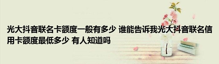 导读 大家好,小元来为大家解答问题。光大抖音联名卡额度一般有多少,谁能告诉我光大抖音联名信用卡额度最低多少,有人知道吗这个很多人还不知道