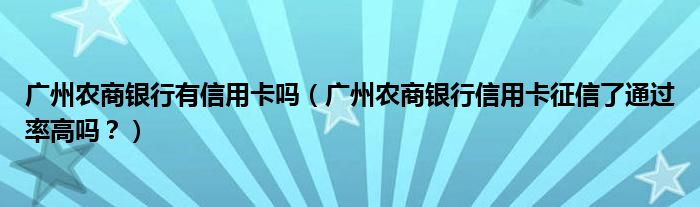 导读 大家好,小元来为大家解答问题。广州农商银行有信用卡吗,广州农商银行信用卡征信了通过率高吗?这个很多人还不知道,现在让我们一起来了解