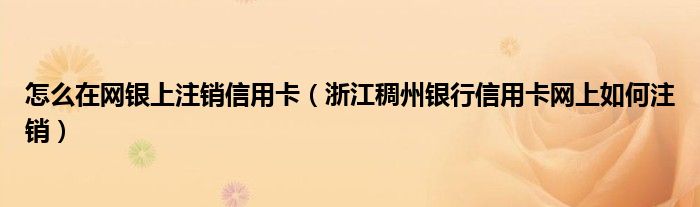大家好,小元来为大家解答问题。怎么在网银上注销信用卡,浙江稠州银行信用卡网上如何注销这个很多人还不知道,现在让我们一起来了解下吧!