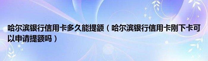 导读 大家好,小元来为大家解答问题。哈尔滨银行信用卡多久能提额,哈尔滨银行信用卡刚下卡可以申请提额吗这个很多人还不知道,现在让我们一起来