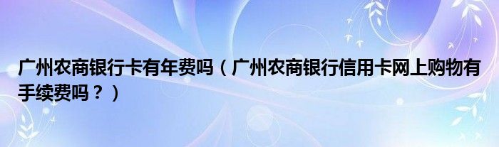 导读 大家好,小元来为大家解答问题。广州农商银行卡有年费吗,广州农商银行信用卡网上购物有手续费吗?这个很多人还不知道,现在让我们一起来了