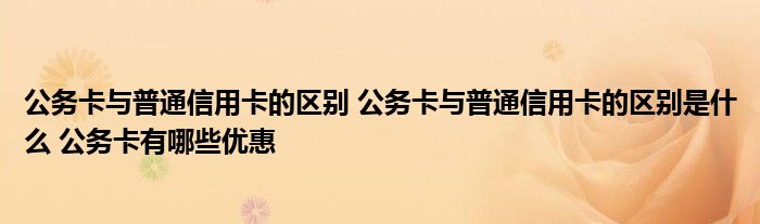 导读 大家好,小元来为大家解答问题。公务卡与普通信用卡的区别,公务卡与普通信用卡的区别是什么,公务卡有哪些优惠这个很多人还不知道,现在让