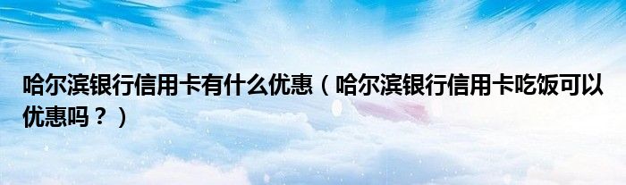 导读 大家好,小元来为大家解答问题。哈尔滨银行信用卡有什么优惠,哈尔滨银行信用卡吃饭可以优惠吗?这个很多人还不知道,现在让我们一起来了解