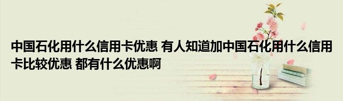 导读 大家好,小元来为大家解答问题。中国石化用什么信用卡优惠,有人知道加中国石化用什么信用卡比较优惠,都有什么优惠啊这个很多人还不知道,
