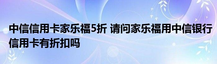 导读 大家好,小元来为大家解答问题。中信信用卡家乐福5折,请问家乐福用中信银行信用卡有折扣吗这个很多人还不知道,现在让我们一起来了解下吧!