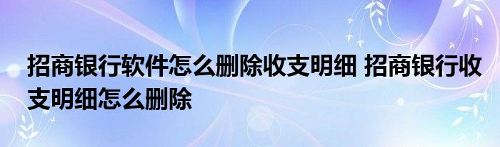 导读 大家好,小元来为大家解答问题。招商银行软件怎么删除收支明细,招商银行收支明细怎么删除这个很多人还不知道,现在让我们一起来了解下吧!