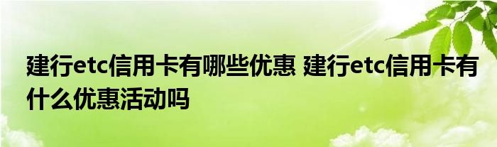 导读 大家好,小元来为大家解答问题。建行etc信用卡有哪些优惠,建行etc信用卡有什么优惠活动吗这个很多人还不知道,现在让我们一起来了解下吧!