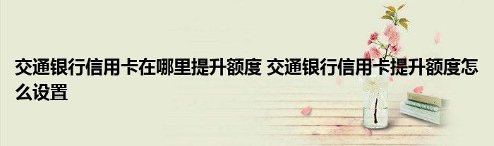 导读 大家好,小元来为大家解答问题。交通银行信用卡在哪里提升额度,交通银行信用卡提升额度怎么设置这个很多人还不知道,现在让我们一起来了解