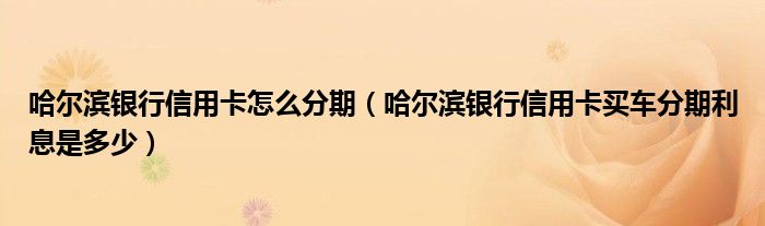导读 大家好,小元来为大家解答问题。哈尔滨银行信用卡怎么分期,哈尔滨银行信用卡买车分期利息是多少这个很多人还不知道,现在让我们一起来了解