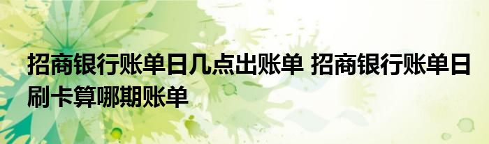 导读 大家好,小元来为大家解答问题。招商银行账单日几点出账单,招商银行账单日刷卡算哪期账单这个很多人还不知道,现在让我们一起来了解下吧!