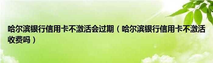 导读 大家好,小元来为大家解答问题。哈尔滨银行信用卡不激活会过期,哈尔滨银行信用卡不激活收费吗这个很多人还不知道,现在让我们一起来了解下