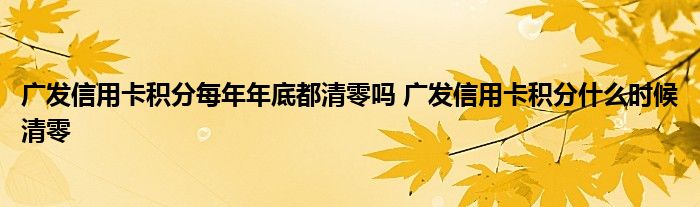 导读 大家好,小元来为大家解答问题。广发信用卡积分每年年底都清零吗,广发信用卡积分什么时候清零这个很多人还不知道,现在让我们一起来了解下