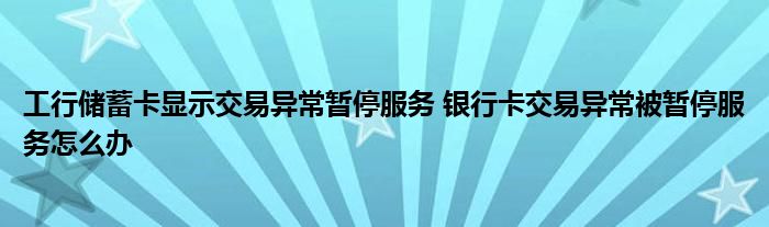 导读 大家好,小元来为大家解答问题。工行储蓄卡显示交易异常暂停服务,银行卡交易异常被暂停服务怎么办这个很多人还不知道,现在让我们一起来了