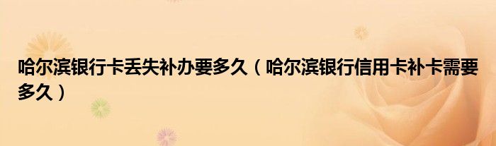 导读 大家好,小元来为大家解答问题。哈尔滨银行卡丢失补办要多久,哈尔滨银行信用卡补卡需要多久这个很多人还不知道,现在让我们一起来了解下吧