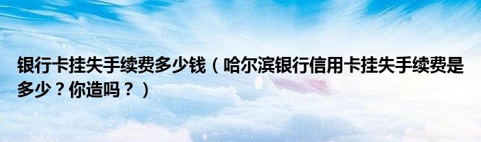 导读 大家好,小元来为大家解答问题。银行卡挂失手续费多少钱,哈尔滨银行信用卡挂失手续费是多少?你造吗?这个很多人还不知道,现在让我们一起