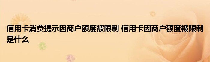 导读 大家好,小元来为大家解答问题。信用卡消费提示因商户额度被限制,信用卡因商户额度被限制是什么这个很多人还不知道,现在让我们一起来了解