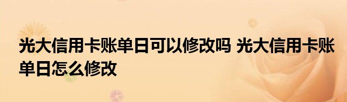 导读 大家好,小元来为大家解答问题。光大信用卡账单日可以修改吗,光大信用卡账单日怎么修改这个很多人还不知道,现在让我们一起来了解下吧!