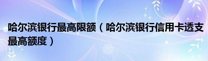导读 大家好,小元来为大家解答问题。哈尔滨银行最高限额,哈尔滨银行信用卡透支最高额度这个很多人还不知道,现在让我们一起来了解下吧!一、哈