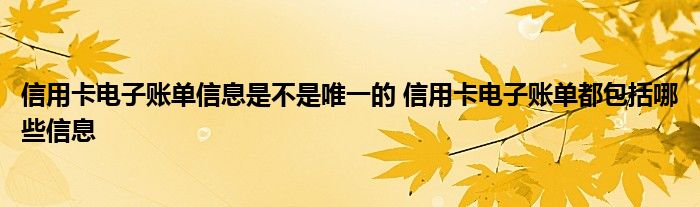 导读 大家好,小元来为大家解答问题。信用卡电子账单信息是不是唯一的,信用卡电子账单都包括哪些信息这个很多人还不知道,现在让我们一起来了解