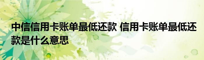 导读 大家好,小元来为大家解答问题。中信信用卡账单最低还款,信用卡账单最低还款是什么意思这个很多人还不知道,现在让我们一起来了解下吧!