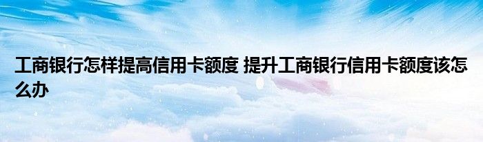 导读 大家好,小元来为大家解答问题。工商银行怎样提高信用卡额度,提升工商银行信用卡额度该怎么办这个很多人还不知道,现在让我们一起来了解下