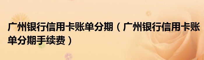 广州银行信用卡持卡人可拨打广州银行信用卡客户服务热线申请账单分期,当当期账单总额超过500元人民币时。