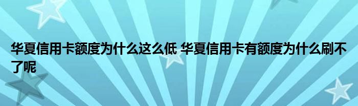 导读 大家好,小元来为大家解答问题。华夏信用卡额度为什么这么低,华夏信用卡有额度为什么刷不了呢这个很多人还不知道,现在让我们一起来了解下
