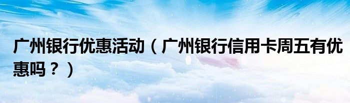 导读 大家好,小元来为大家解答问题。广州银行优惠活动,广州银行信用卡周五有优惠吗?这个很多人还不知道,现在让我们一起来了解下吧!广州银行