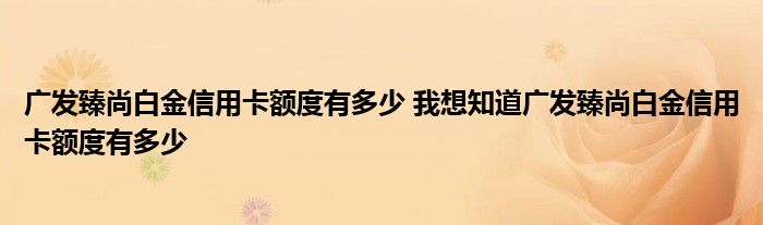 导读 大家好,小元来为大家解答问题。广发臻尚白金信用卡额度有多少,我想知道广发臻尚白金信用卡额度有多少这个很多人还不知道,现在让我们一起