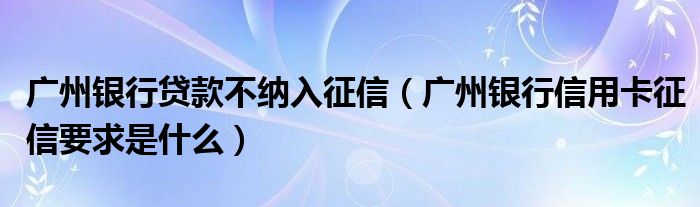 大家好,小元来为大家解答问题。广州银行贷款不纳入征信,广州银行信用卡征信要求是什么这个很多人还不知道,现在让我们一起来了解下吧!